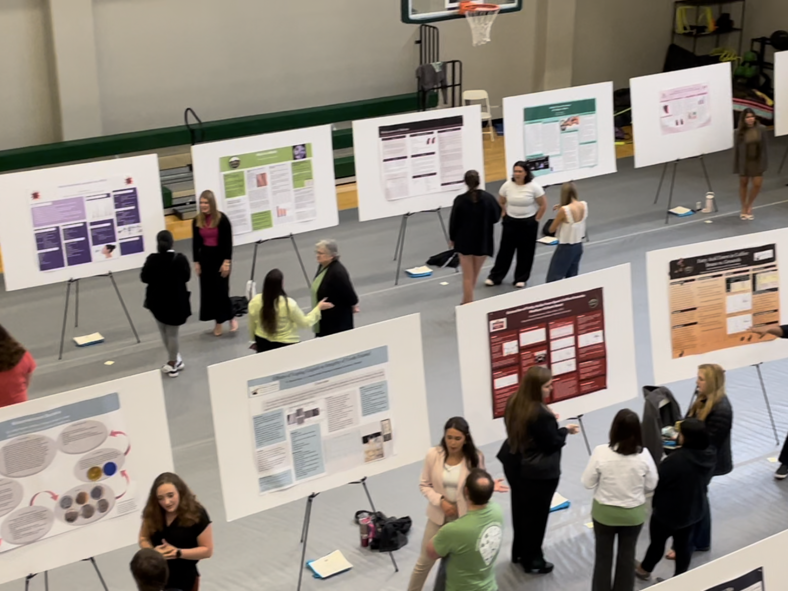 In the early hours of the Morning, Symposium begins with a bang as a flood of interested individuals enter the commons gym to listen to student’s research topics and see their posters.