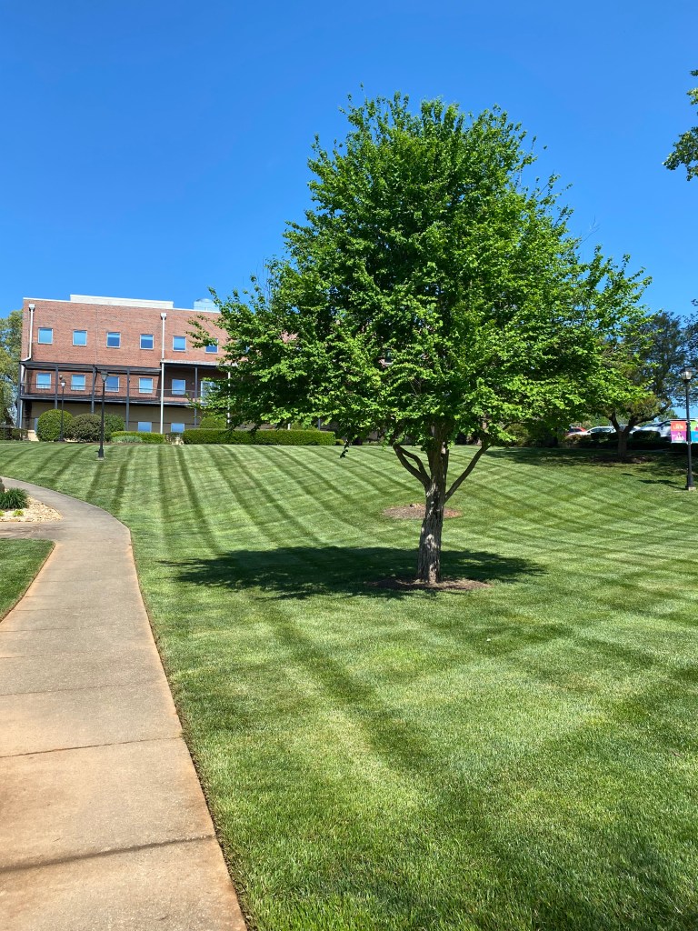 The grass on the quad is mowed in a pattern that looks very symmetrical. I love how this looks because it opens my eyes to how much care is put into our university and making it look good for everyone who steps onto campus.