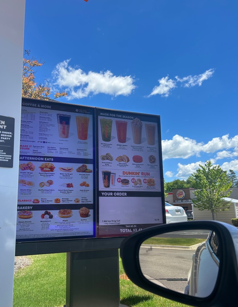 The first thing I do everyday is go through the Dunkin Donuts and get a coffee.