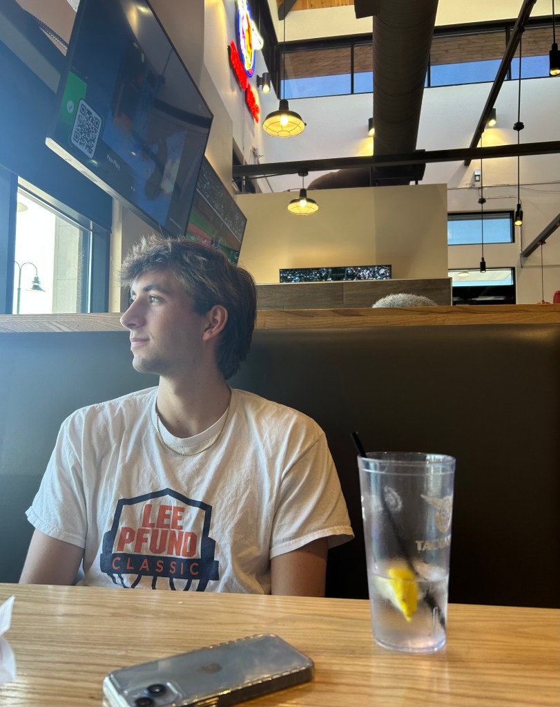 Last thing I did before I went to sleep was go hangout with some friends. This is Silas Mulligan after he got back from his job as an umpire.