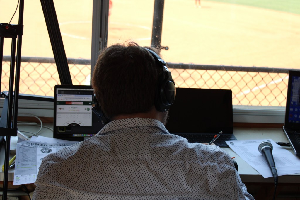 Eric Edmondson is junior Sports Communications major at Piedmont University, and is one of the most notable voices currently on the MANE Broadcasting Network. This year, he has enjoyed calling games for the Lions Baseball, Softball, Men’s and Women’s Basketball, Men’s and Women’s Lacrosse, and Men’s and Women’s Soccer teams. This photo story will take a look at him calling Softball’s Senior Day doubleheader against Maryville College on Saturday, April 20, 2024.
