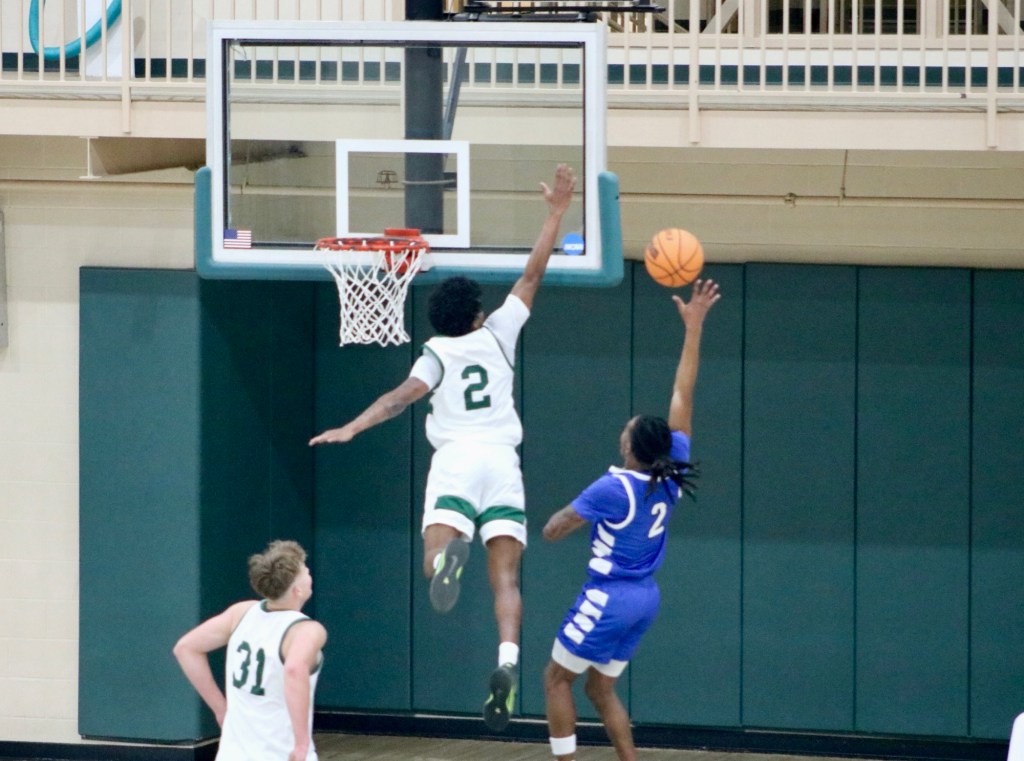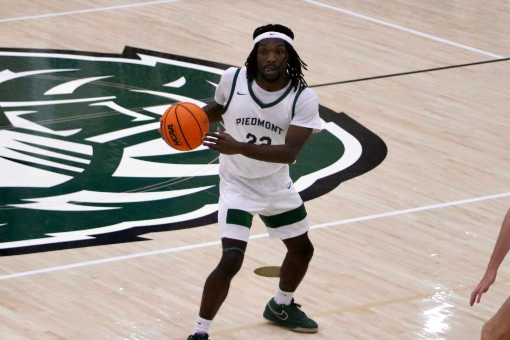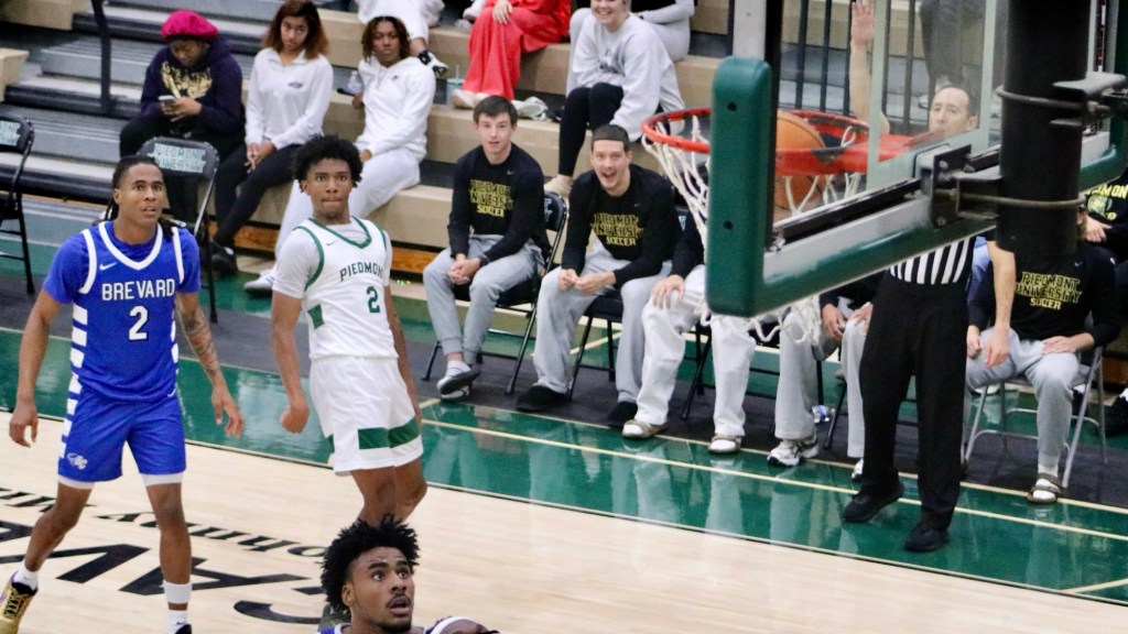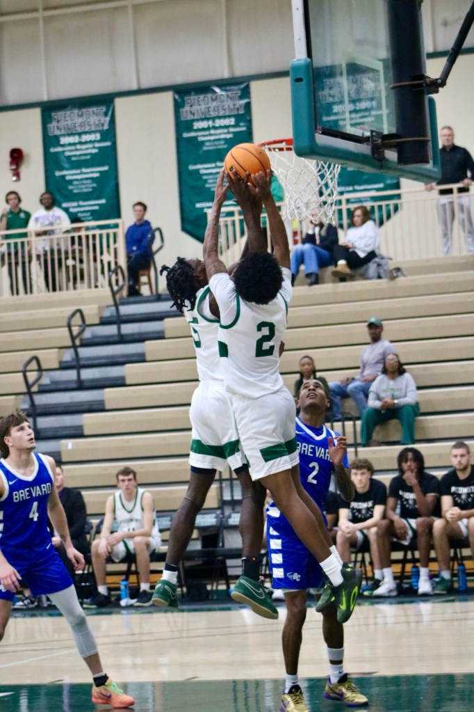 Piedmont Lions battle Brevard at Cave Arena in Demorest, GA., with every point counting in a narrow 81-77 loss. Javi Marlowe (#5), graduate student and guard for the Lions, moves the ball up the court as he fends off Brevard at Cave Arena. Grady Robertson (#11), sophomore guard for the Lions, throws down a dunk against Brevard, finishing with 8 points on 4 field goals. Lions battle in the air as both players go up to clutch the goal. Senior #30 Fisher Darden drives the ball as an opponent defends him. Silas Mulligan (#22), senior guard for the Lions, eyes his next move while handling the ball. Israel Hall (#2), junior guard for the Lions, eyes the hoop as he drains a 3-point shot, scoring 24 points in the game. Junior #2 Israel Hall rises to seat away a shot during the matchup against Brevard.