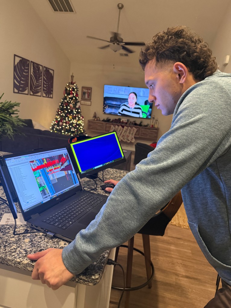 Nathan Mix walks into Parker’s Kitchen in Murrells Inlet, S.C. The Piedmont University alumni starts most days with a quick energy drink stop before beginning work.Mix reaches for his favorite energy drink, Reign, which he says helps him wake up and stay focused during his morning work hours.Mix works from home for SAUER, a company that designs piping systems for commercial buildings. He starts his mornings at his desk before heading to the gym.Mix bench presses during his afternoon lift at the gym. He trains most days of the week and says working out has become a major part of his post-college lifestyle.After his lift, Mix eats at a local Mexican restaurant to increase his calorie intake. He is currently working to bulk up and says meals like this help him reach his daily calorie goals.Mix films content for a brand deal on the beach. He began creating fitness and basball content during college and continues to grow his personal brand as an alumni.Mix edits his videos for social media on his phone. Much of his content work happens on the go and is done between workouts, meals and working for SAUER.As the day winds down, Mix takes a walk along the shoreline in Murrells Inlet. He says post-college life has given him more space to enjoy quiet moments at the end of the day.