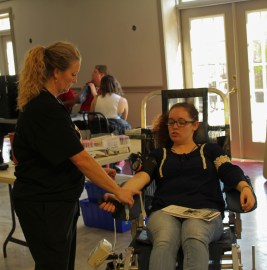 IMG_9620 Piedmont College holds a blood drive in Neilson Hall to help save lives. Maggie Pfiel, Sophomore, and Nursing major at Piedmont College donates blood to help those in need.