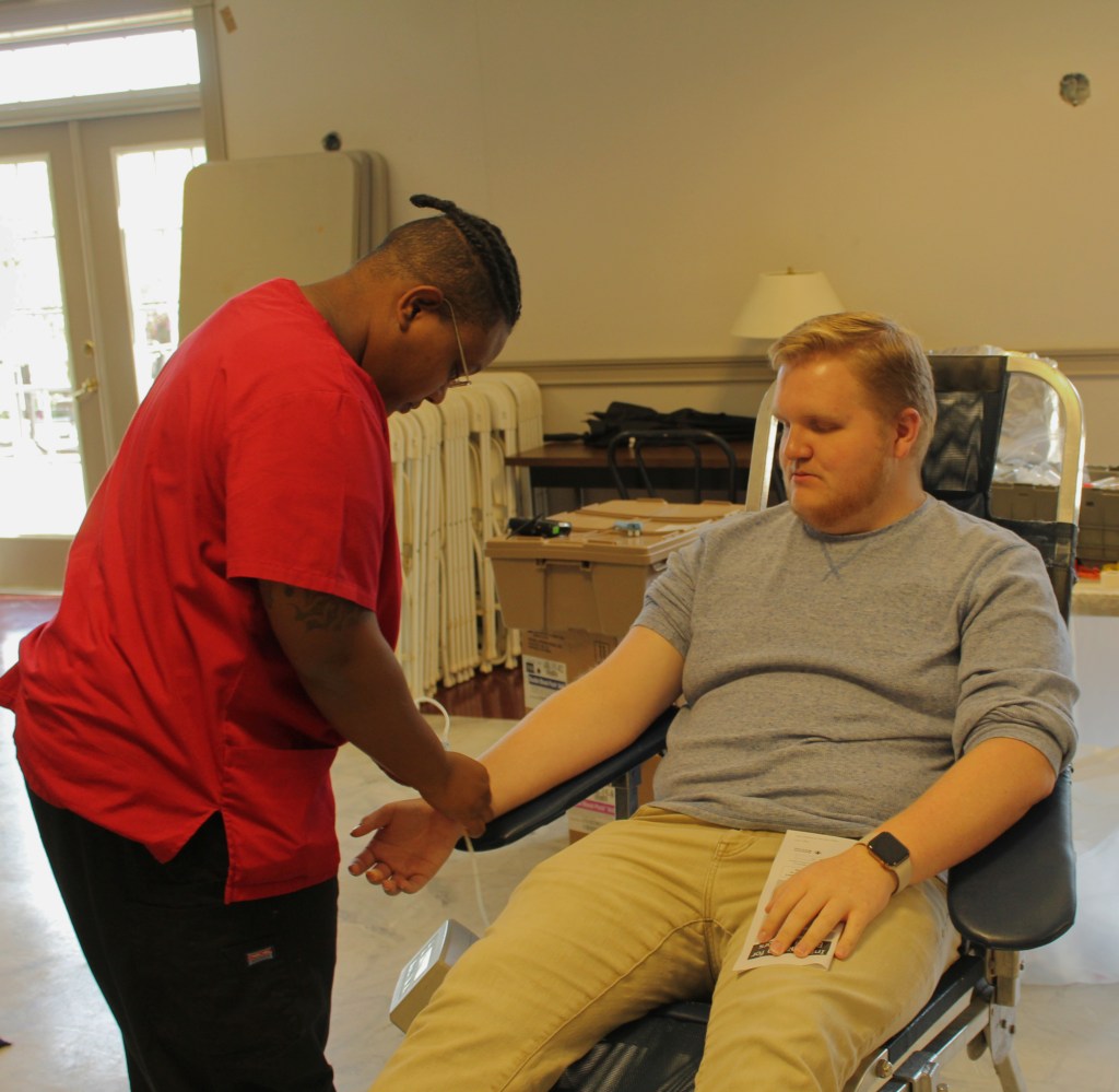 IMG_9622 Piedmont College holds a blood drive to help save lives for those in need. Chance Passmore, Senior, Vocal Performance major at Piedmont College donates blood to help people who are in need.