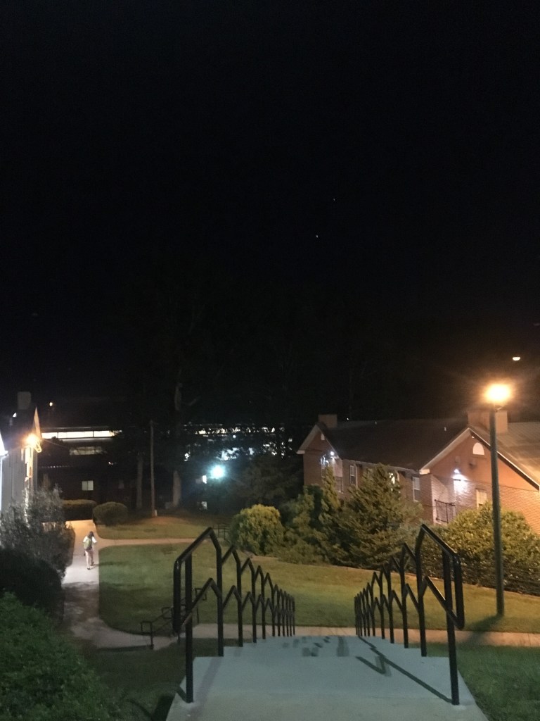 Piedmont at Night An unknown Piedmont student returning to her dorm late Sunday night. (Bottom left corner)